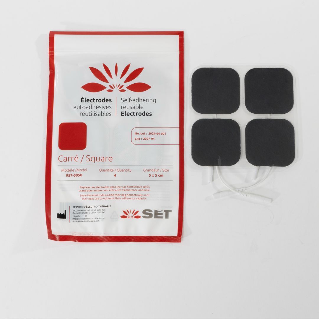 Discover our reusable, square-shaped self-adhesive electrodes, designed for use with your electrotherapy devices.